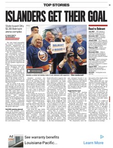 President Claire Harding, and three generations from one family, John D’Errico, Stacie Moisa and Kimberly Moisa, were asked by the organization to attend the meeting, and be a part of the speakers, advising the ESD to move forward with the project. Islander co-owner Jon Ledecky was quite emotional when he got up to speak, mentioning the fans that came to support the project, and advised everyone there, that this project would be a destination for all Long Islanders, and that the Isles deserved this project.